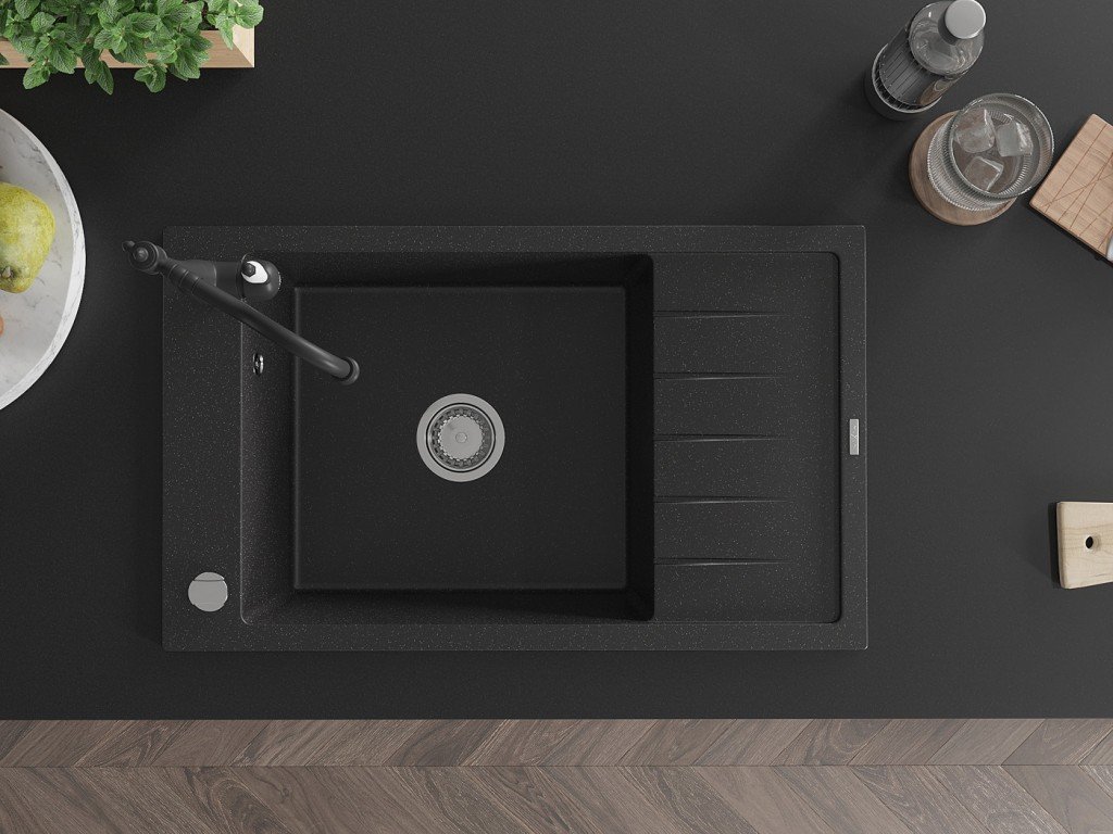 MEXEN/S - Elias granitový dřez 1-miska včetně baterie Carla, černá/stříbrná metalik 6511-73-670700-70