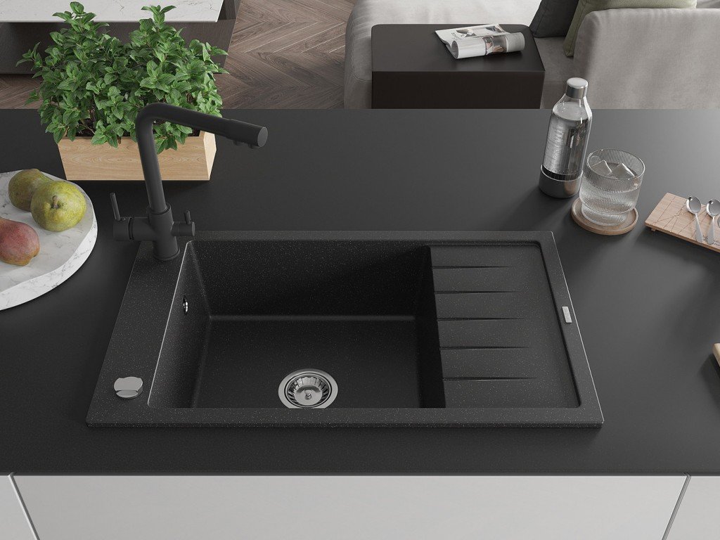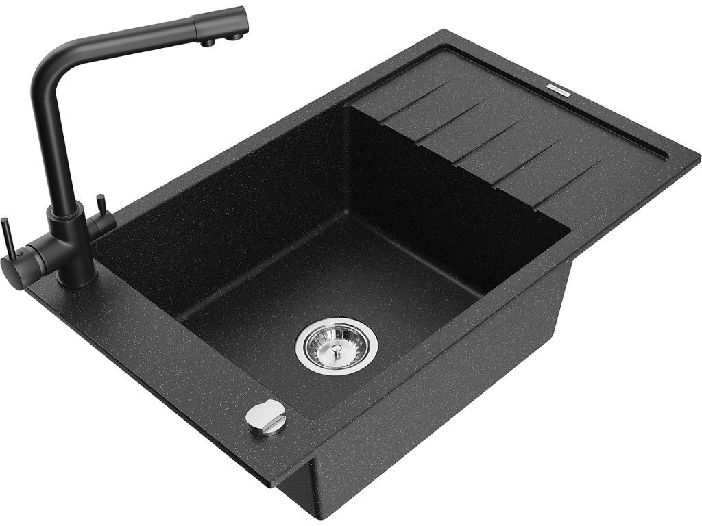 MEXEN/S - Elias granitový dřez 1-miska včetně baterie Duero, černá/stříbrná metalik 6511-73-671600-70