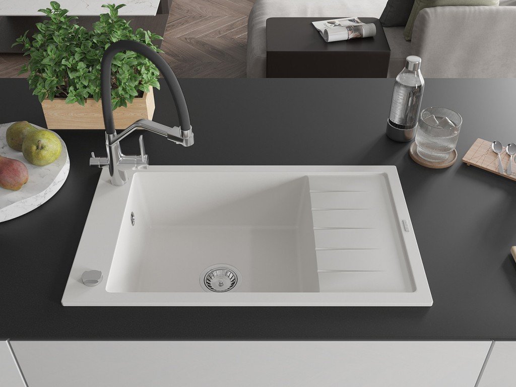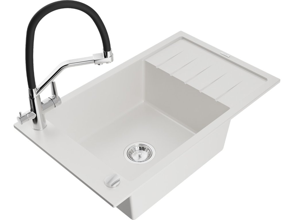 MEXEN/S - Elias granitový dřez s odkapávačem včetně baterie Duo, bílá 6511-20-671701-07
