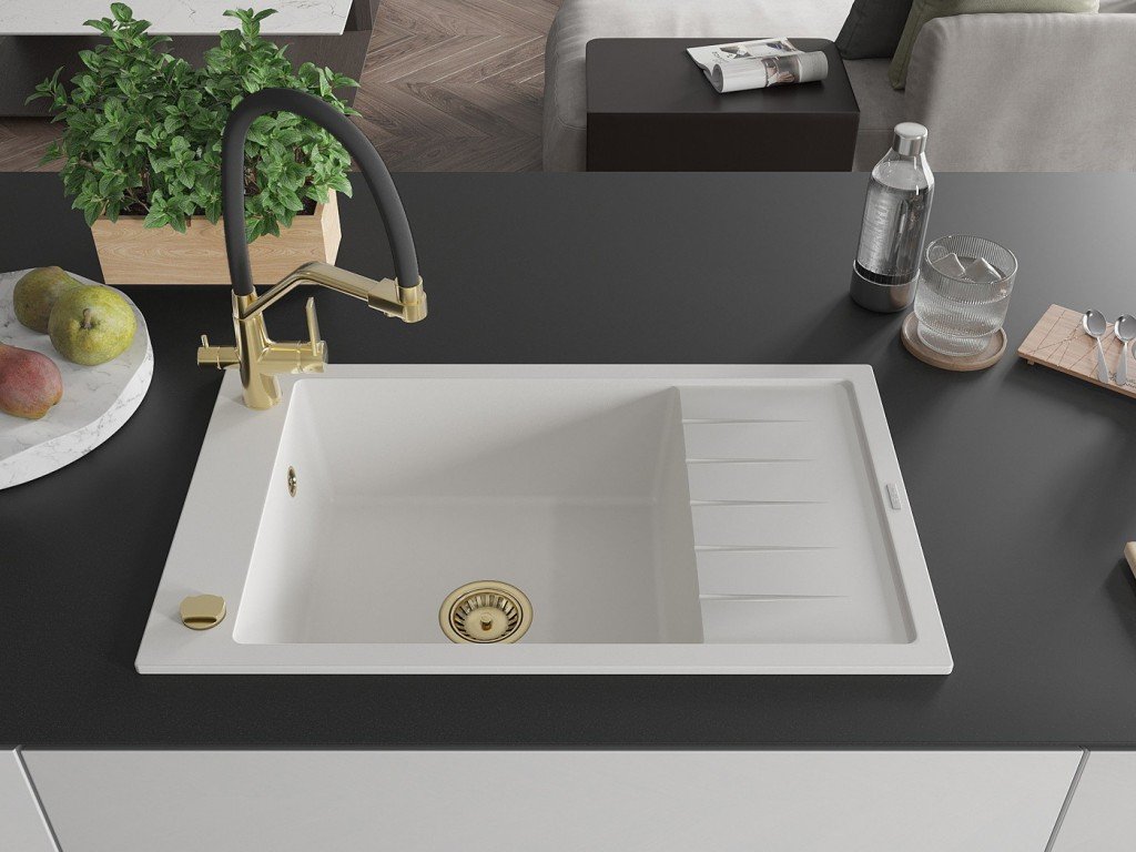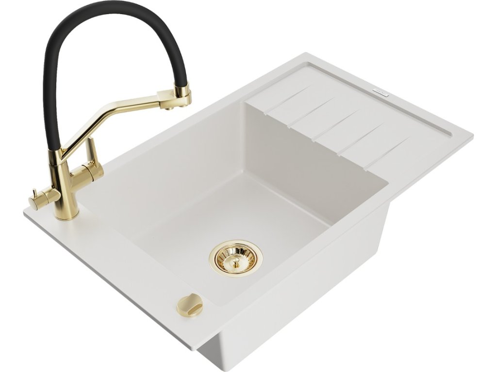 MEXEN/S - Elias granitový dřez s odkapávačem včetně baterie Duo, bílá 6511-20-671701-57-G