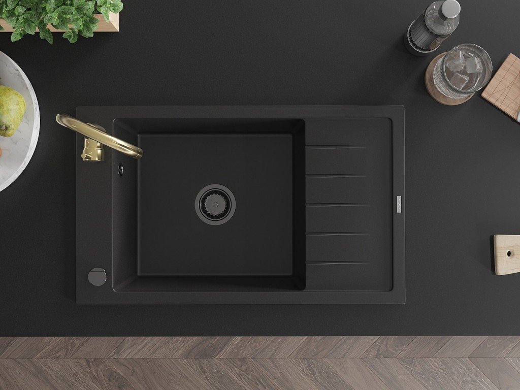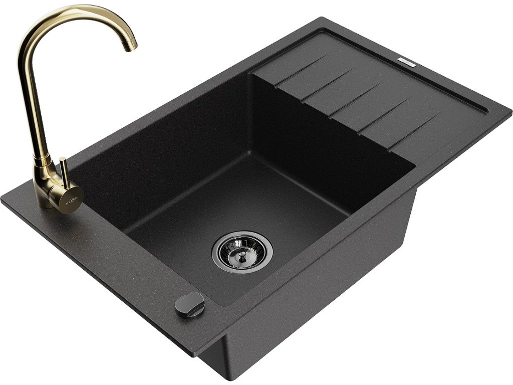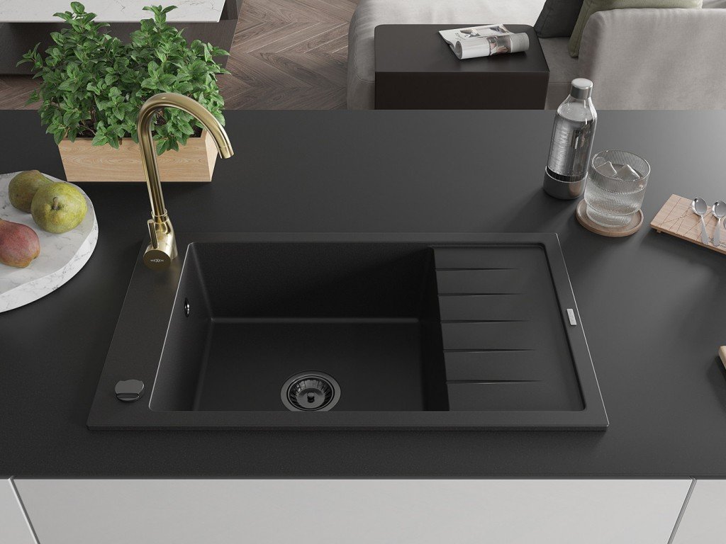 MEXEN/S - Elias granitový dřez s odkapávačem včetně baterie Telma, černá 6511-77-670200-50-B