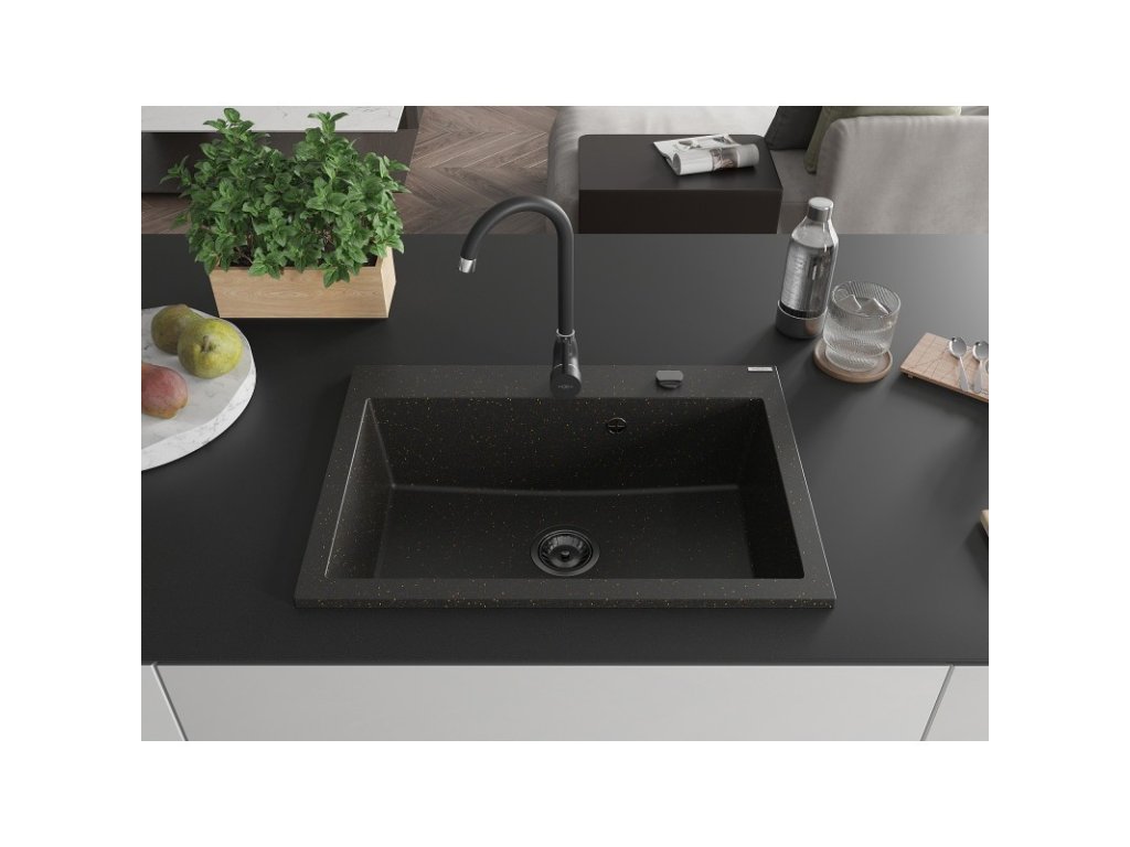 MEXEN/S - Elix granitový dřez 1-miska 700 x 500 mm, černá/zlatá metalik, sifon černá 6526701005-75-B