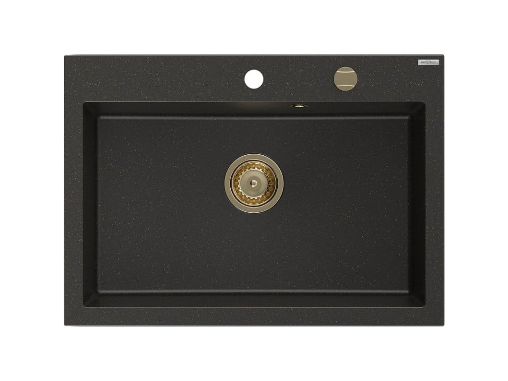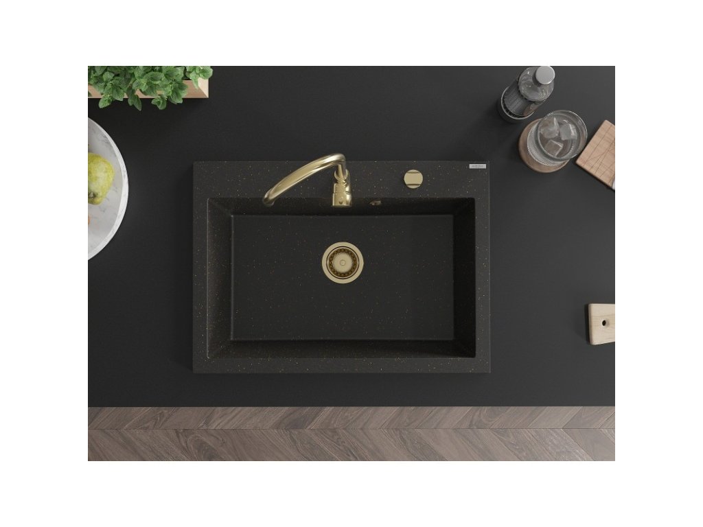 MEXEN/S - Elix granitový dřez 1-miska 700 x 500 mm, černá/zlatá metalik, sifon zlatá 6526701005-75-G