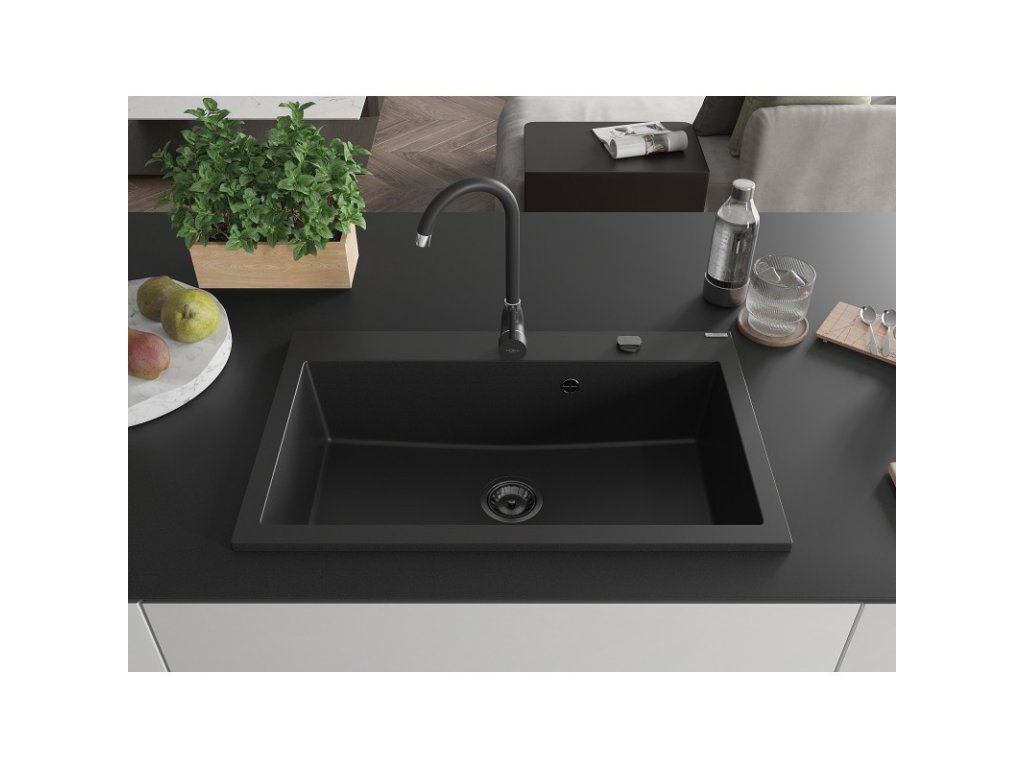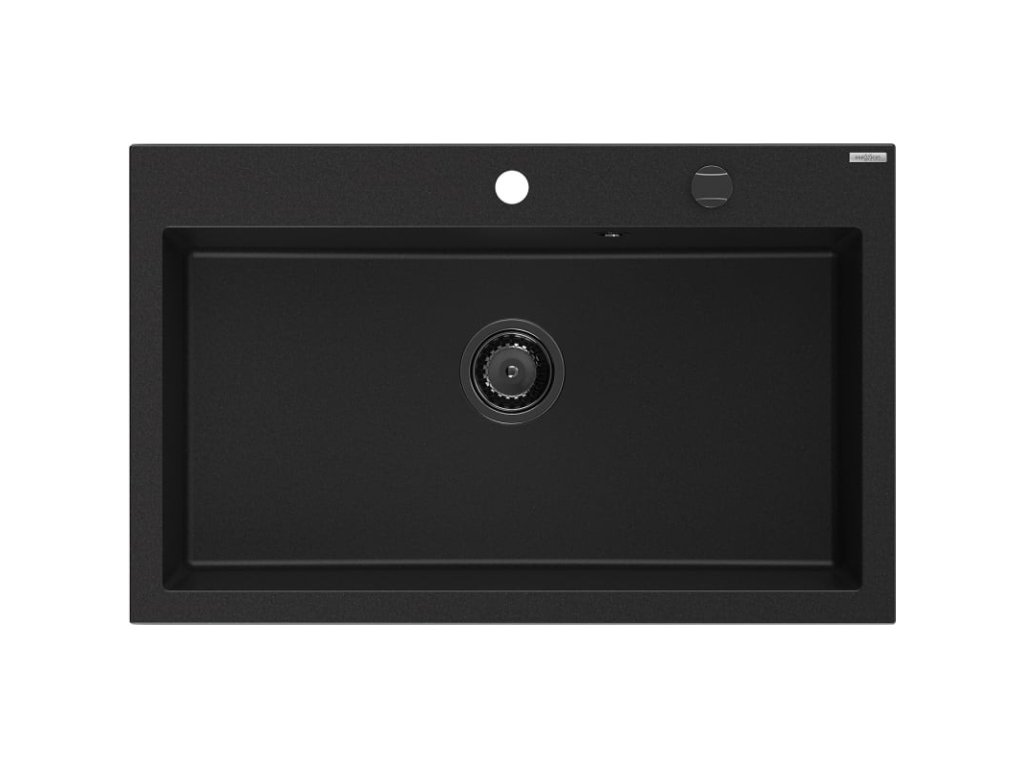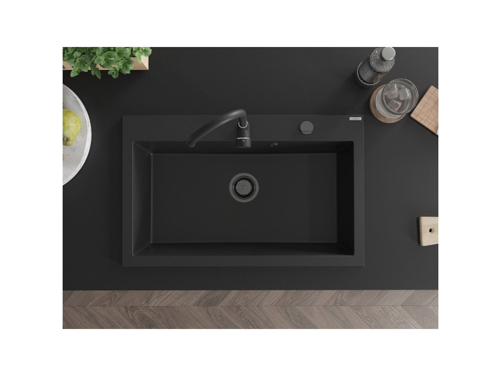 MEXEN/S - Elix granitový dřez 1-miska 800 x 500 mm, černá, sifon zlatá 6527801005-77-B