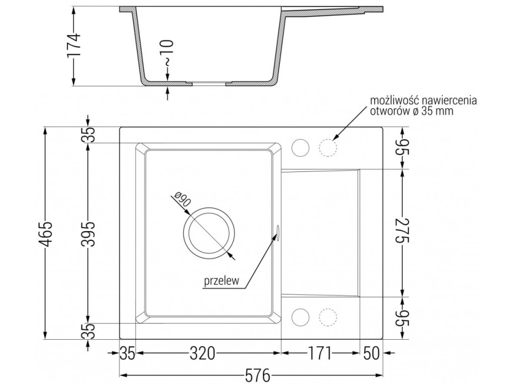 Průměr odtoku: ø90 mm