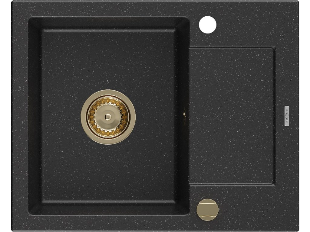 MEXEN/S - Enzo granitový dřez 1-miska s odkapávačem 576 x 465 mm, černá/stříbrná 6506571005-73-G