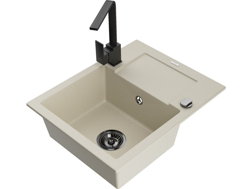 MEXEN/S - Enzo granitový dřez 1-miska s odkapávačem včetně baterie Rita, béžový 6506-69-670300-70