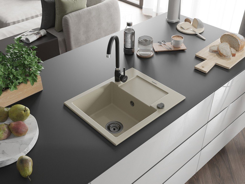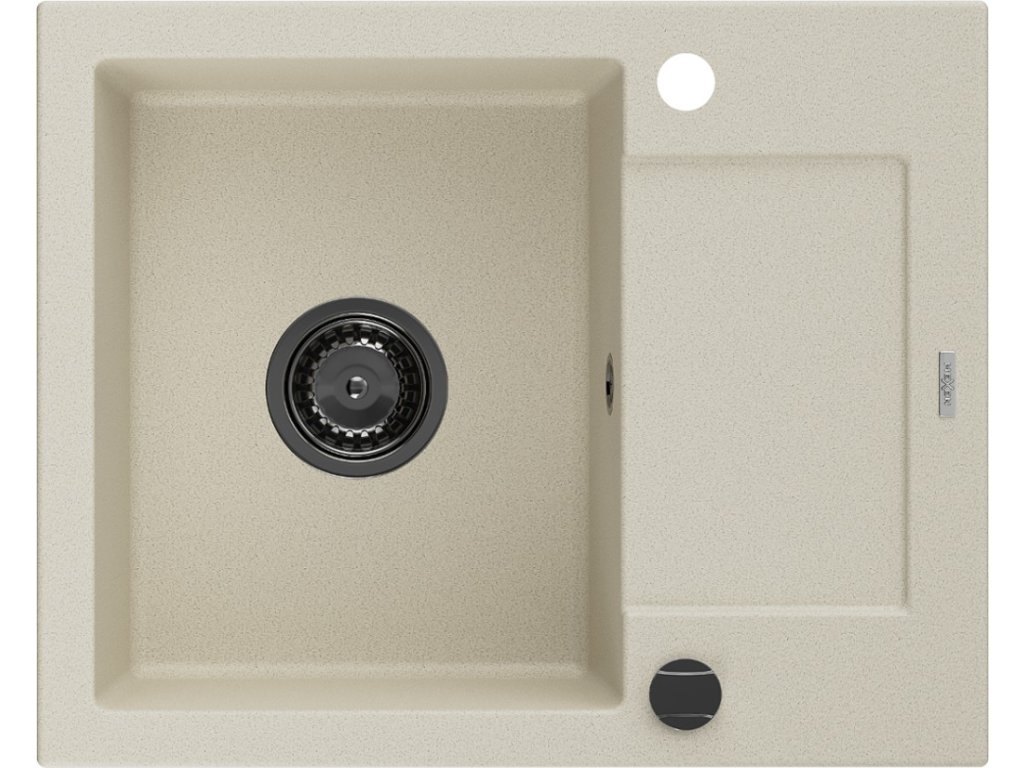 MEXEN/S - Enzo granitový dřez 1 s odkapávačem 576 x 465 mm, béžová, + černý sifon 6506571005-69-B
