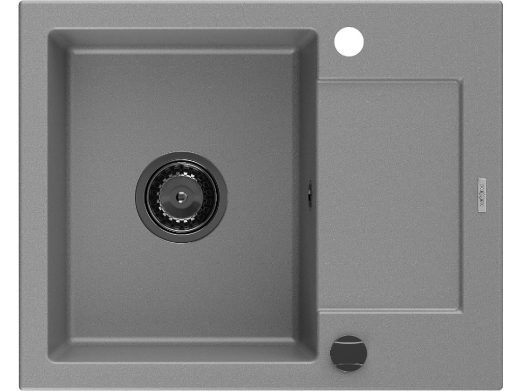 MEXEN/S - Enzo granitový dřez 1 s odkapávačem 576 x 465 mm, šedá, + sifon grafit 6506571005-71-B