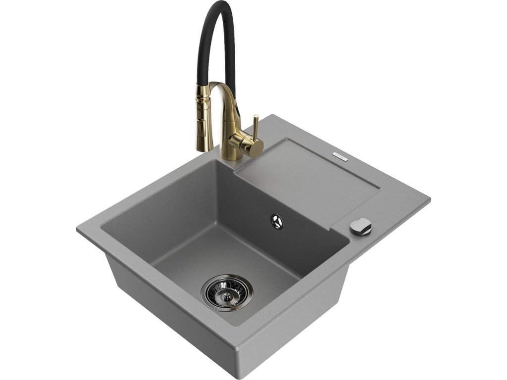 MEXEN/S - Enzo granitový dřez 1 s odkapávačem včetně baterie Aster, šedá 6506-71-73450-57-B