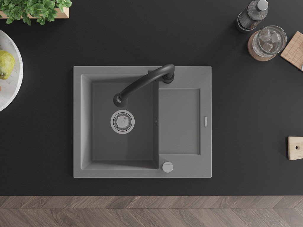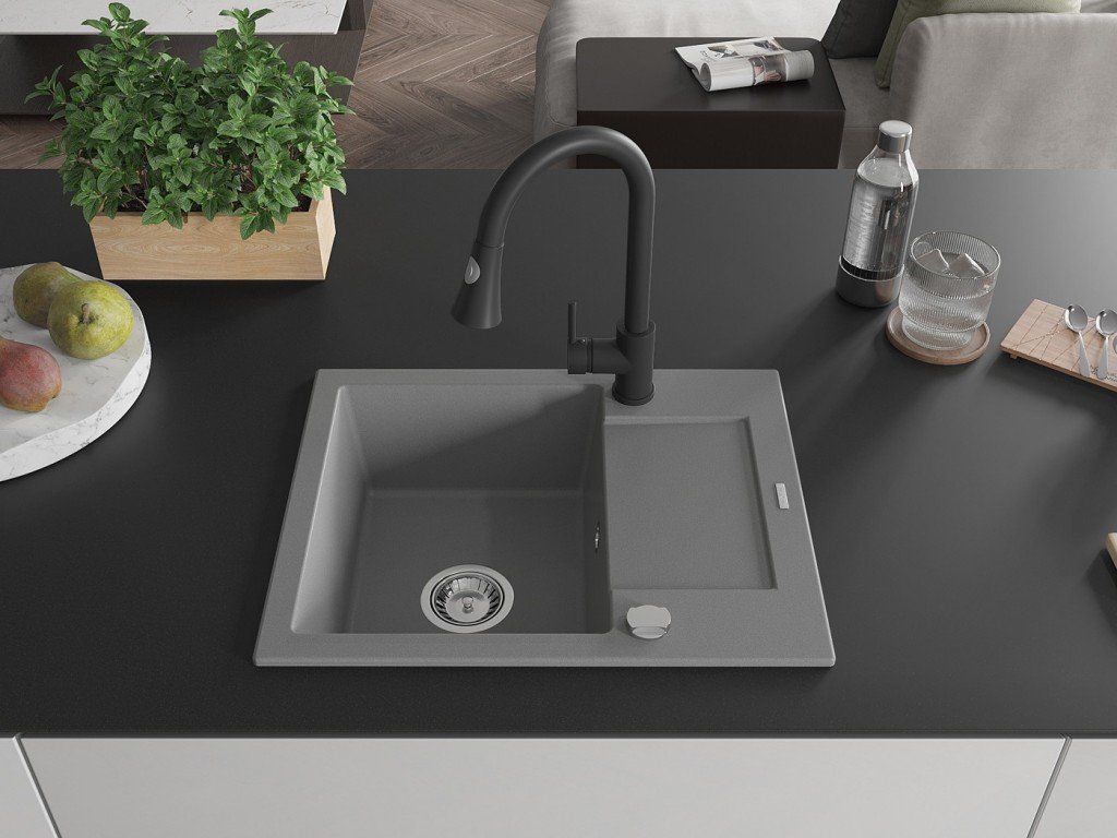 MEXEN/S - Enzo granitový dřez 1 s odkapávačem včetně baterie Elia, šedá 6506-71-670101-70