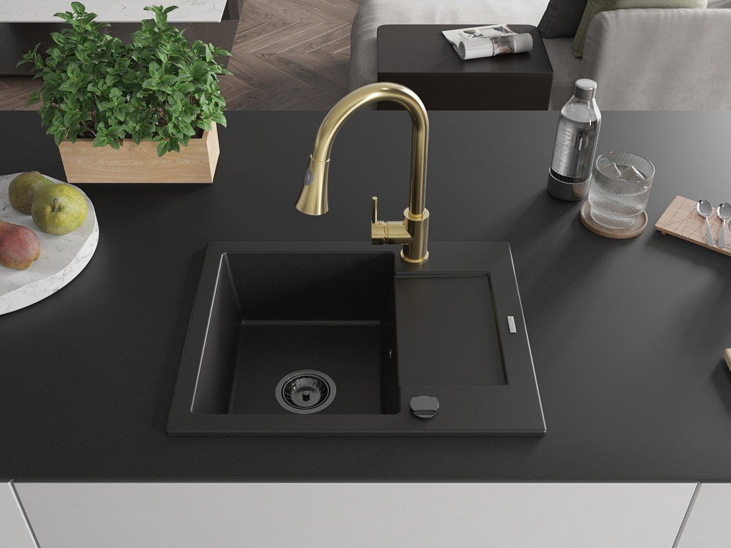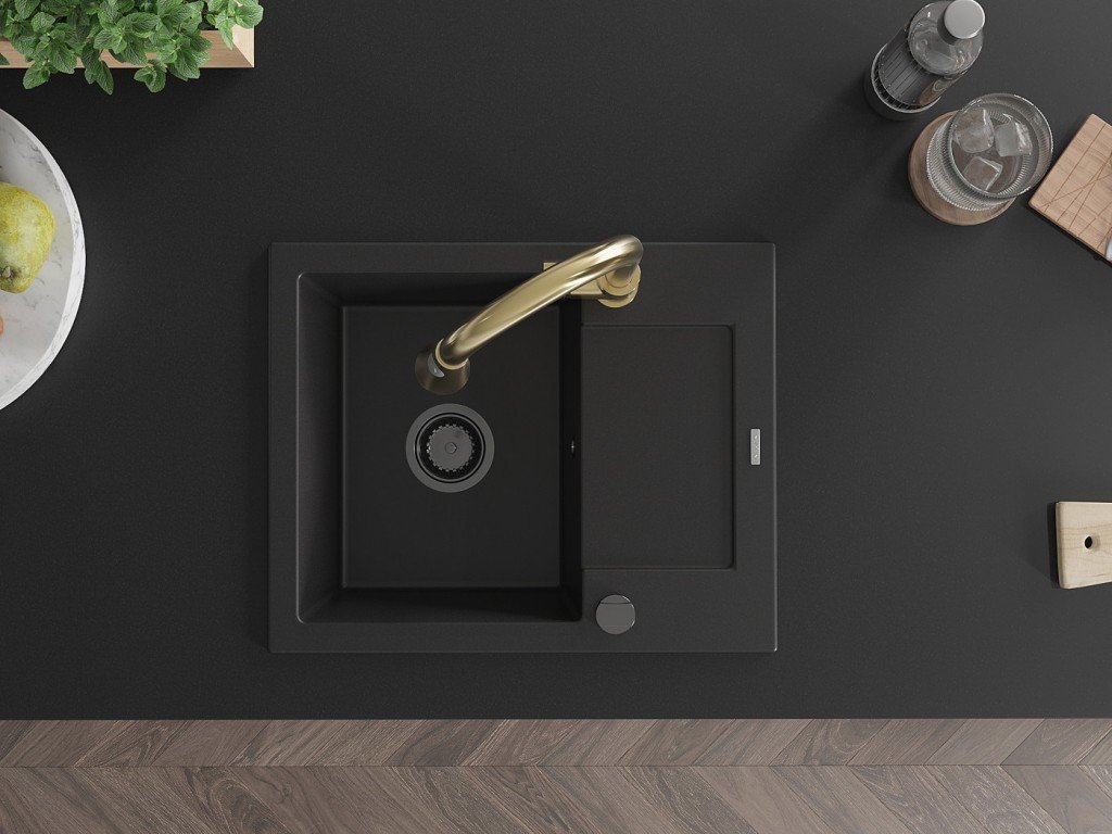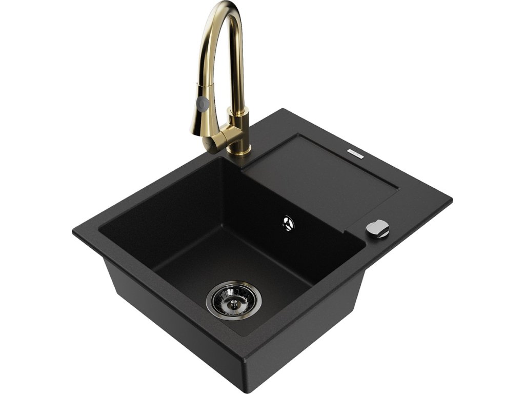 MEXEN/S - Enzo granitový dřez 1 s odkapávačem včetně Elia, černá 6506-77-670101-50-B