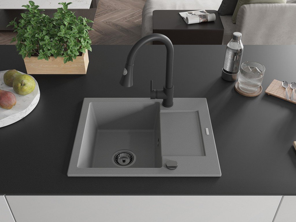 MEXEN/S - Enzo granitový dřez 1 s odkapávačem včetně Elia, šedá 6506-71-670101-70-B