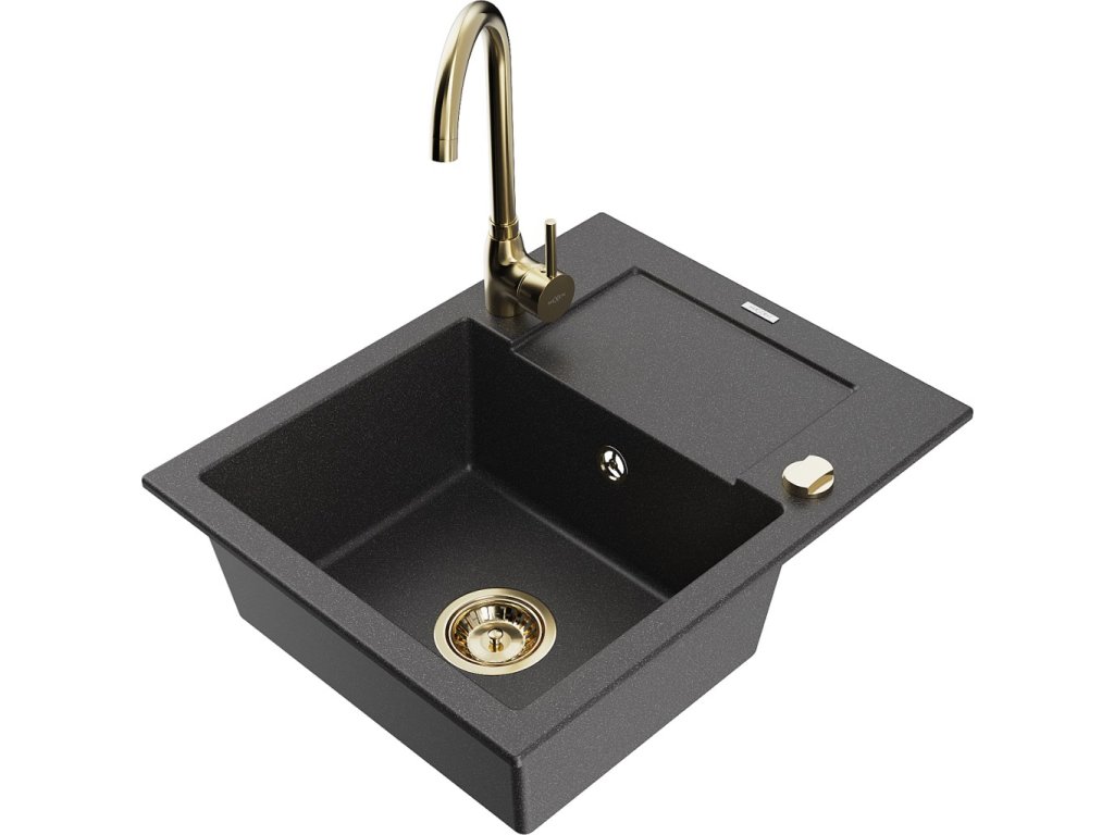 MEXEN/S - Enzo granitový dřez s odkapávačem včetně baterie Telma, černá kropenatá 6506-76-670200-50