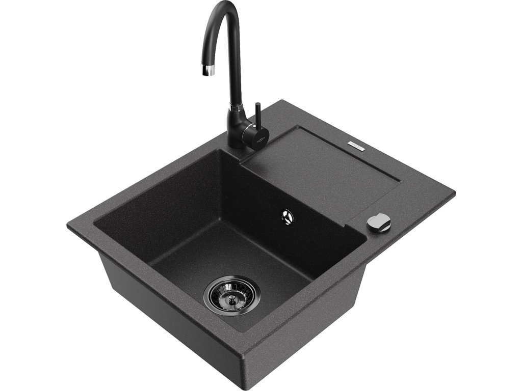 MEXEN/S - Enzo granitový dřez s odkapávačem včetně baterie Telma, černá kropenatá 6506-76-670200-70-B