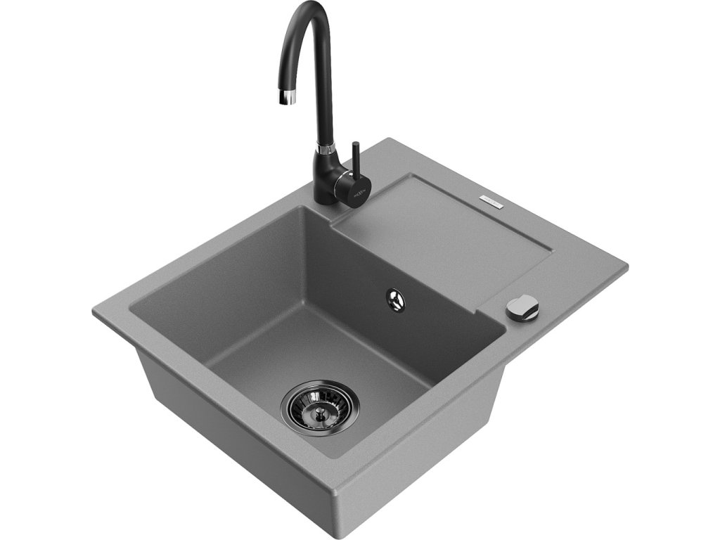 MEXEN/S - Enzo granitový dřez s odkapávačem včetně baterie Telma, šedá 6506-71-670200-70-B