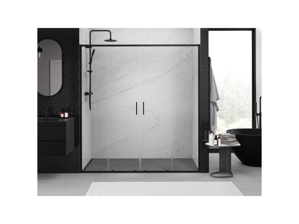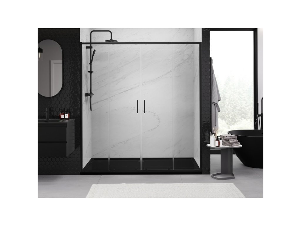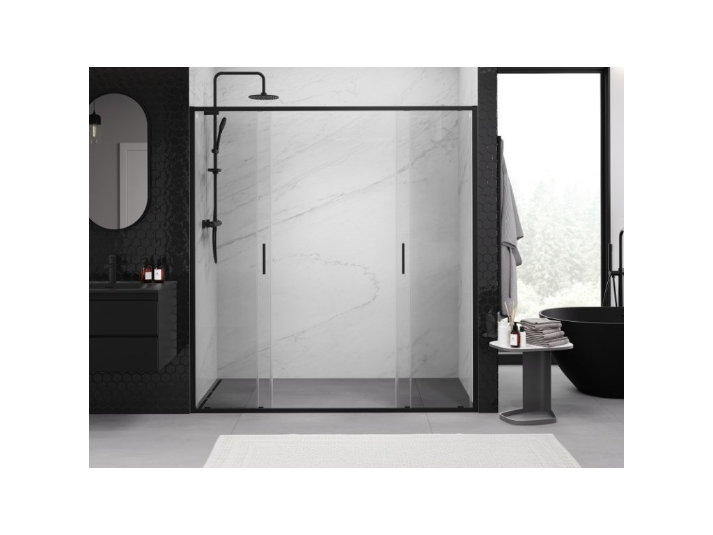 MEXEN/S - Exo dvojité posuvné sprchové dveře 190, transparent, černá 8152-190-000-70-00