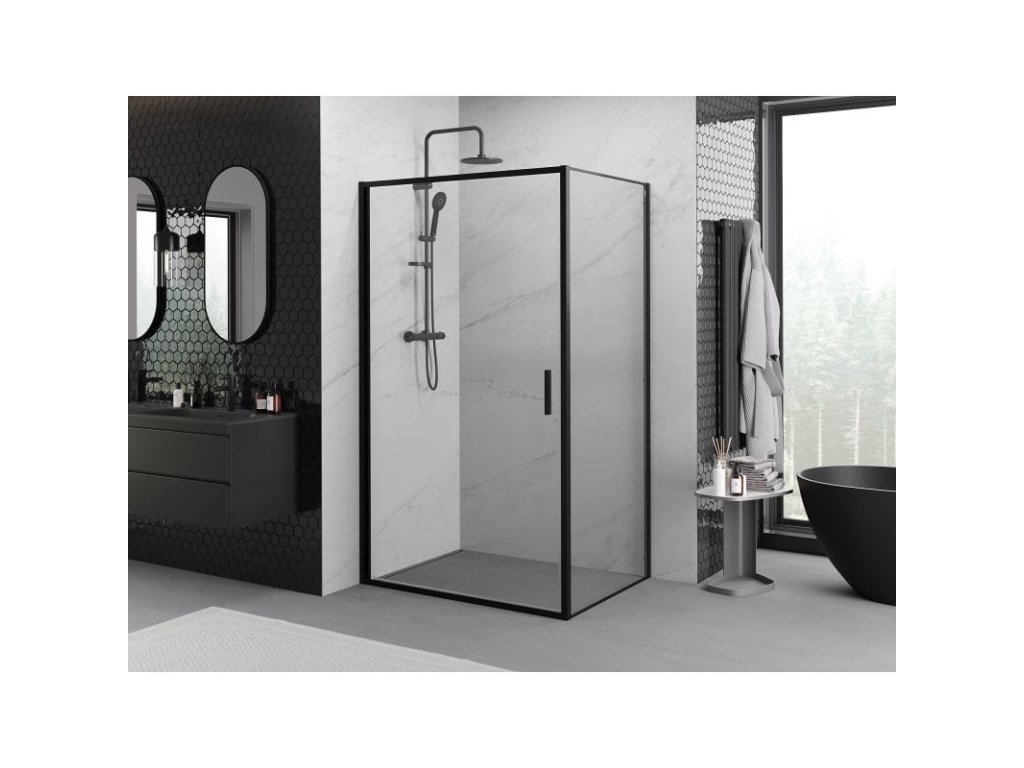 MEXEN/S - Exo sprchový kout dveře křídlové 85 x 90, transparent, černá 817-085-090-70-00