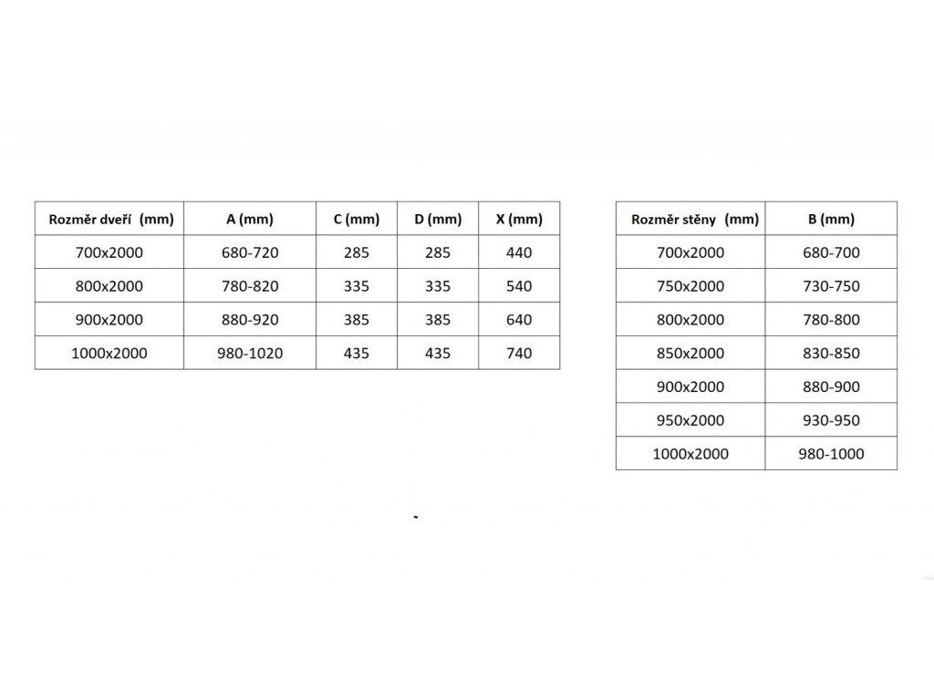 Specifikace produktu:Rozměr: 90x100 cm (dveře 90 cm, stěna 100 cm)