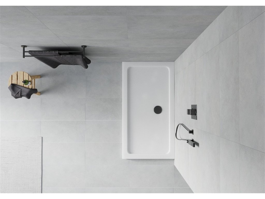 MEXEN/S - Flat sprchová vanička obdélníková slim 130 x 70, bílá + černý sifon 40107013B
