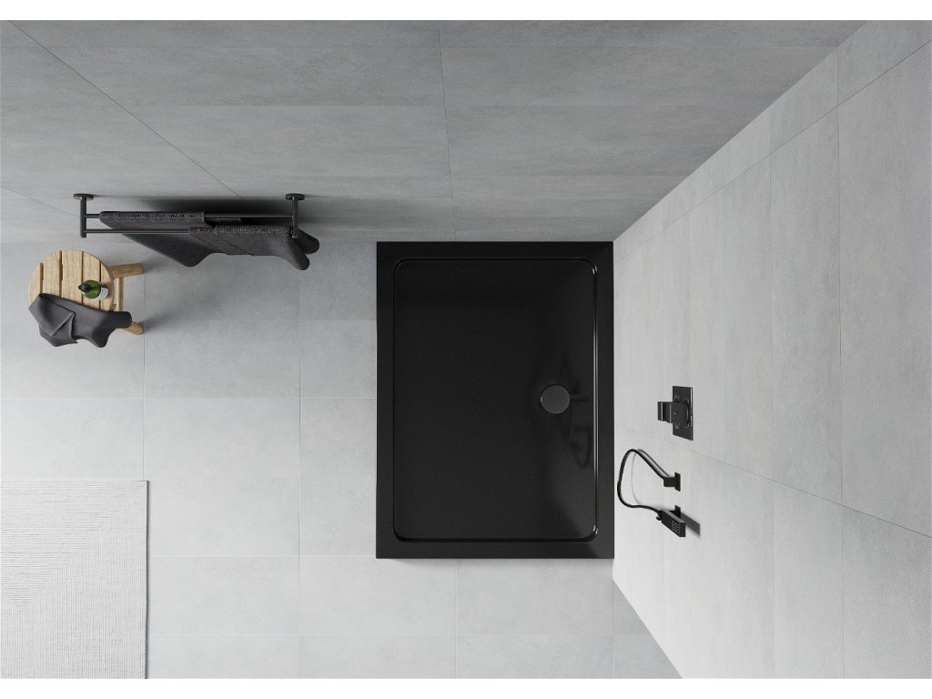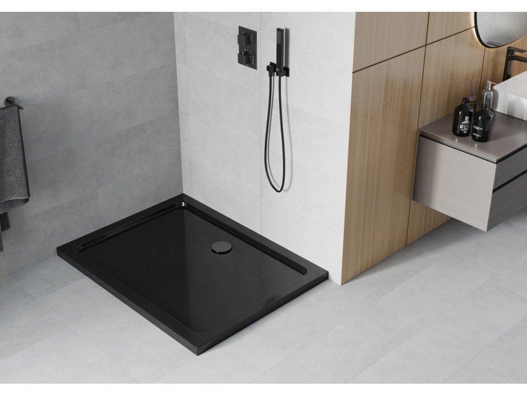 MEXEN/S - Flat sprchová vanička obdélníková slim 90 x 70, černá + černý sifon 40707090B