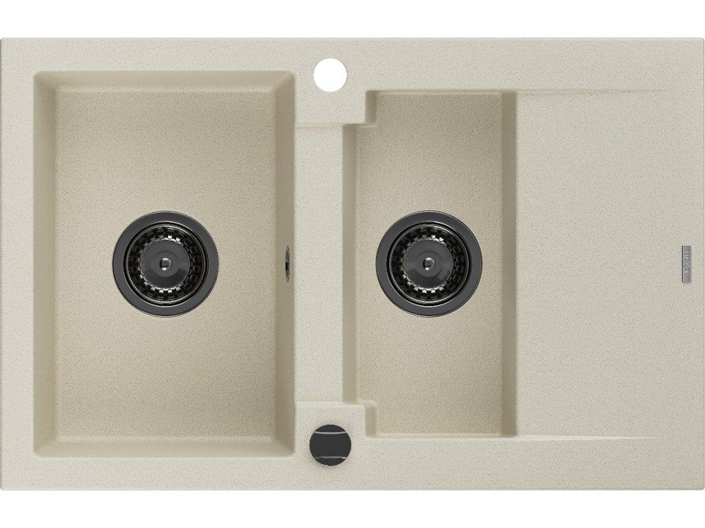 MEXEN/S - Gaspar granitový dřez 1.5 s odkapávačem 737 x 475 mm, béžový, černý sifon 6507731505-69-B