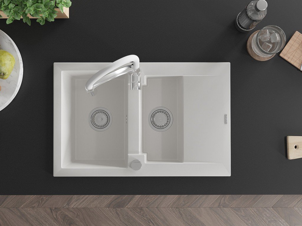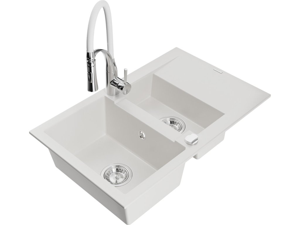 MEXEN/S - Gaspar granitový dřez 1.5 s odkapávačem včetně baterie Aster, bílá 6507-20-73450-02