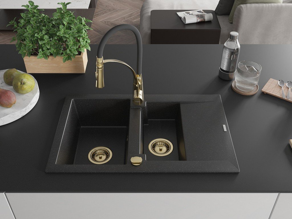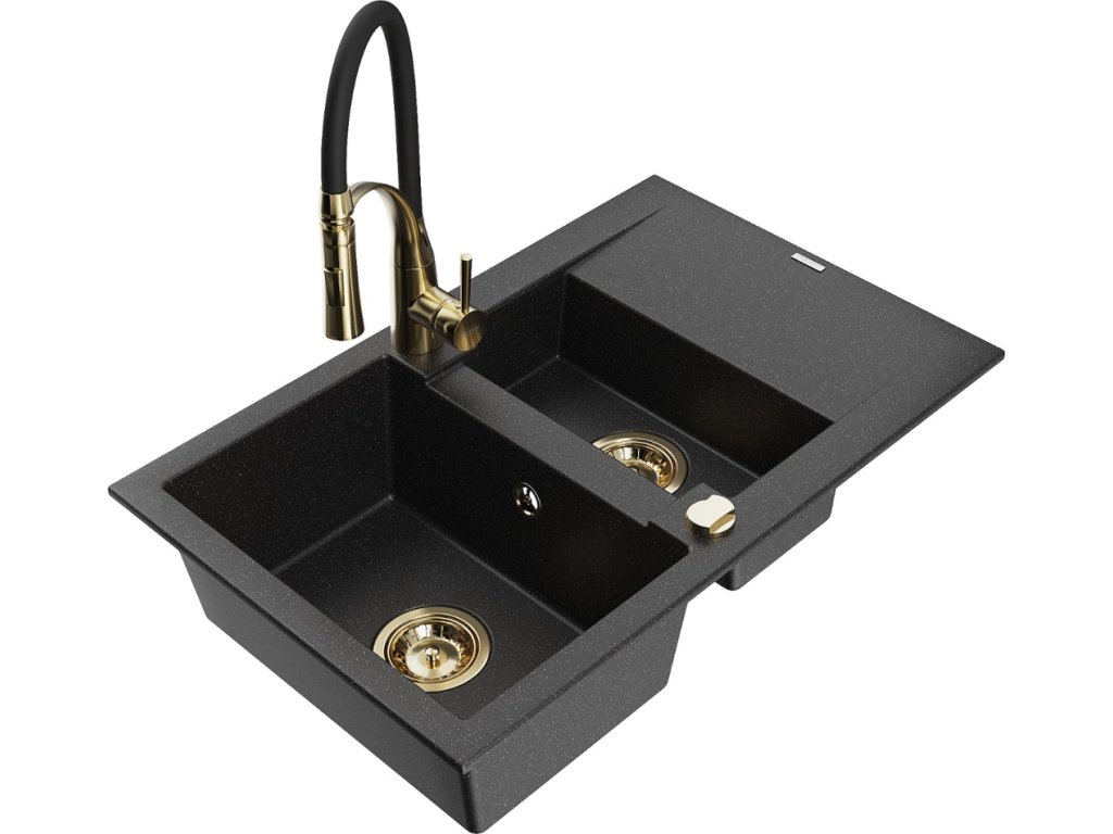 MEXEN/S - Gaspar granitový dřez 1.5 s odkapávačem včetně baterie Aster, černá/stříbrná 6507-73-73450-57-G
