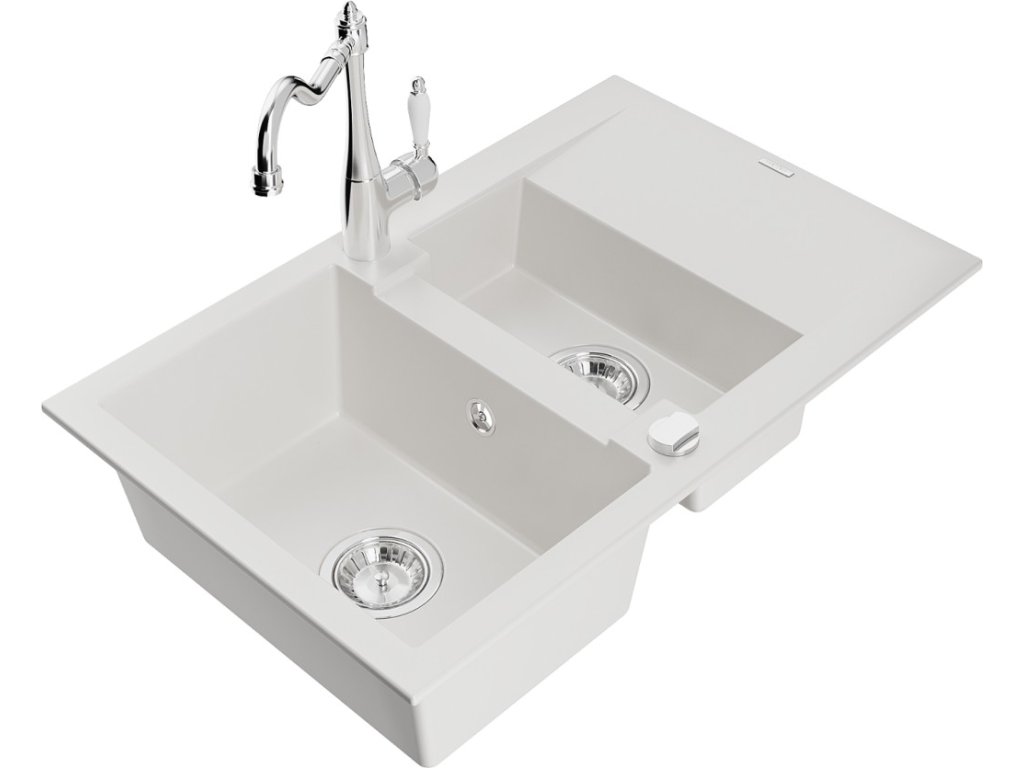 MEXEN/S - Gaspar granitový dřez 1.5 s odkapávačem včetně baterie Carla, bílá 6507-20-670700-00