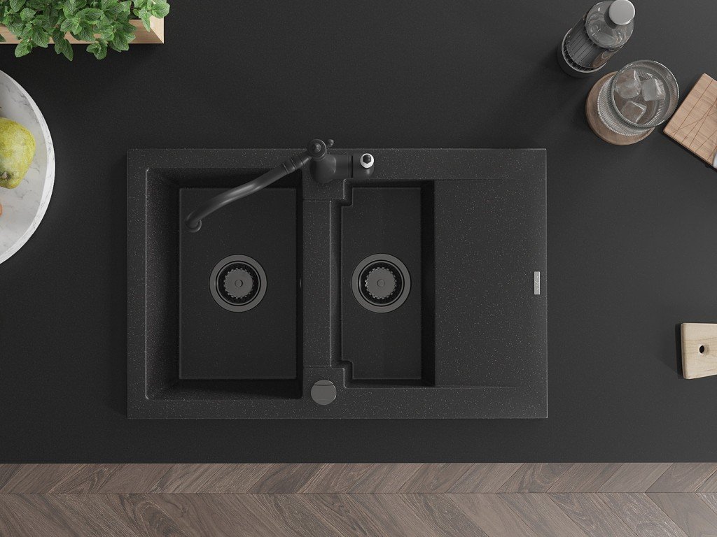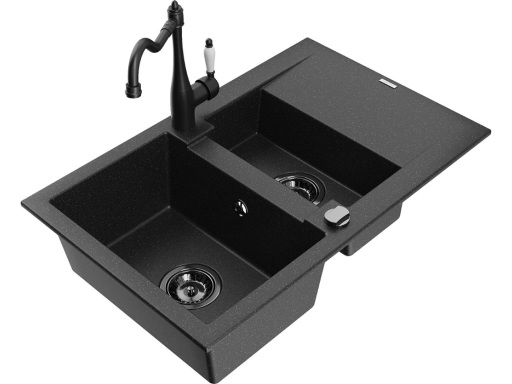 MEXEN/S - Gaspar granitový dřez 1.5 s odkapávačem včetně baterie Carla, černá/stříbrná 6507-73-670700-70-B