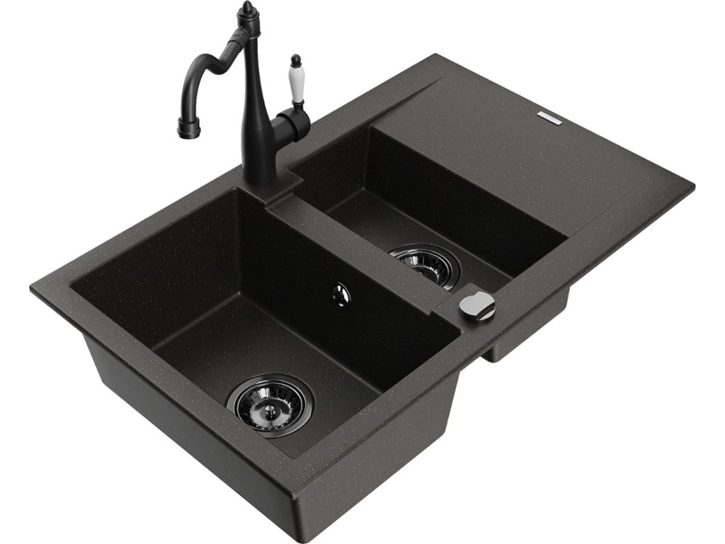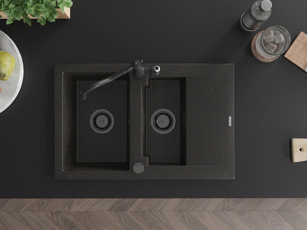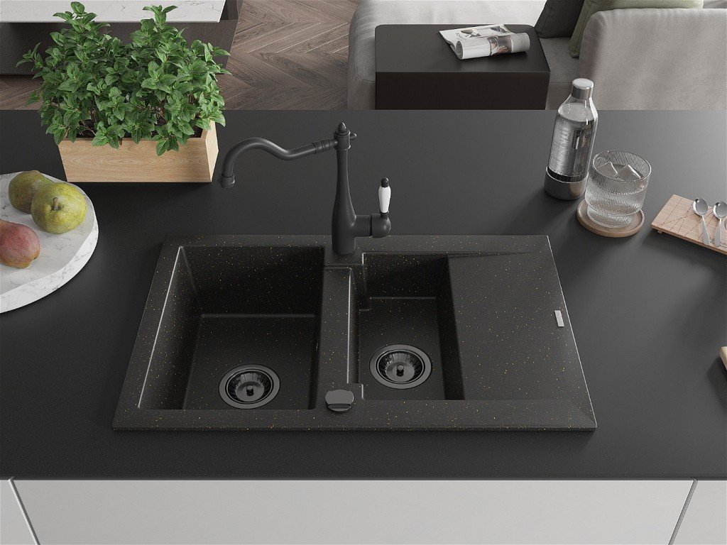 MEXEN/S - Gaspar granitový dřez 1.5 s odkapávačem včetně baterie Carla černá/zlatá metalik 6507-75-670700-70-B