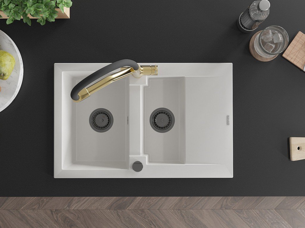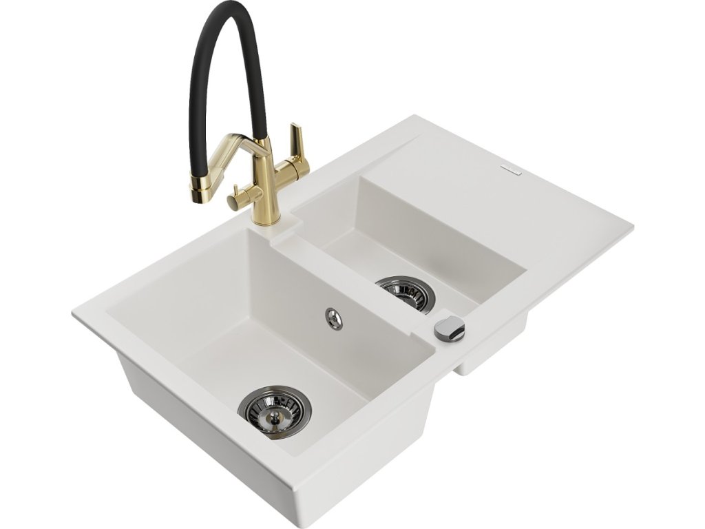 MEXEN/S - Gaspar granitový dřez 1.5 s odkapávačem včetně baterie Duo, bílá 6507-20-671701-57-B