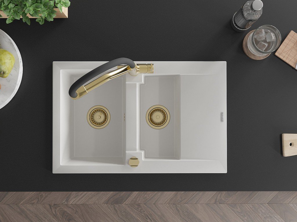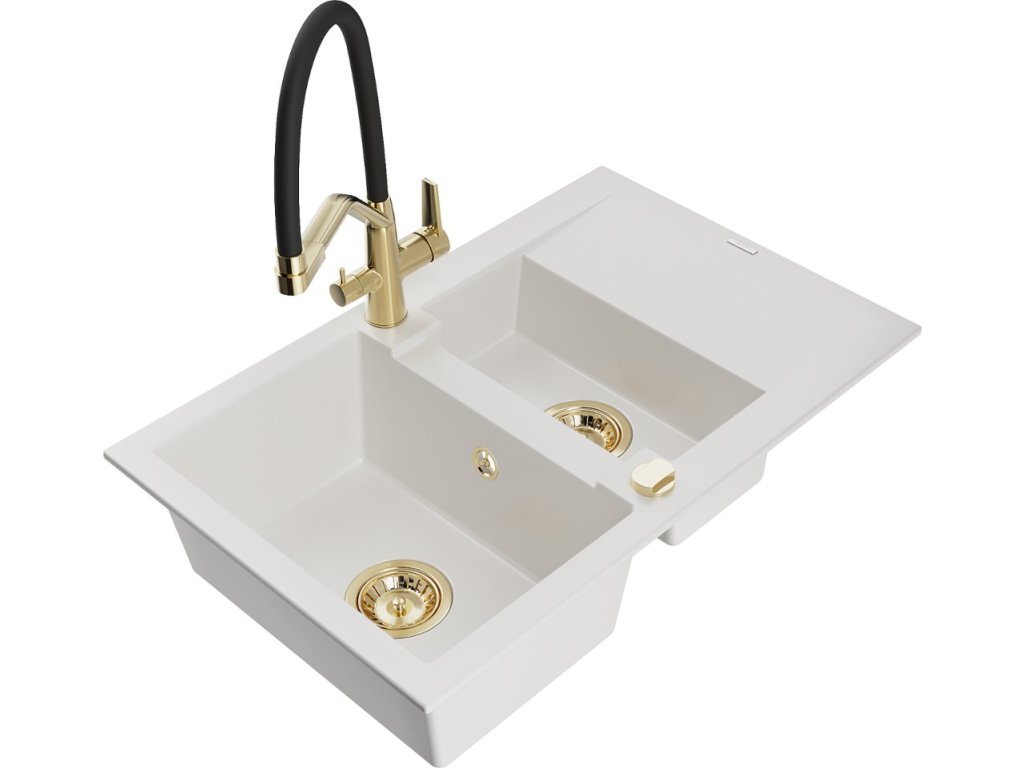 MEXEN/S - Gaspar granitový dřez 1.5 s odkapávačem včetně baterie Duo, bílá 6507-20-671701-57-G