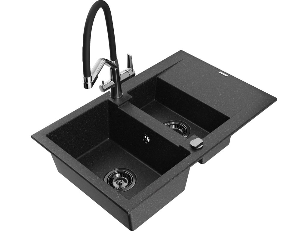 MEXEN/S - Gaspar granitový dřez 1.5 s odkapávačem včetně baterie Duo, černá/stříbrná 6507-73-671701-07-B
