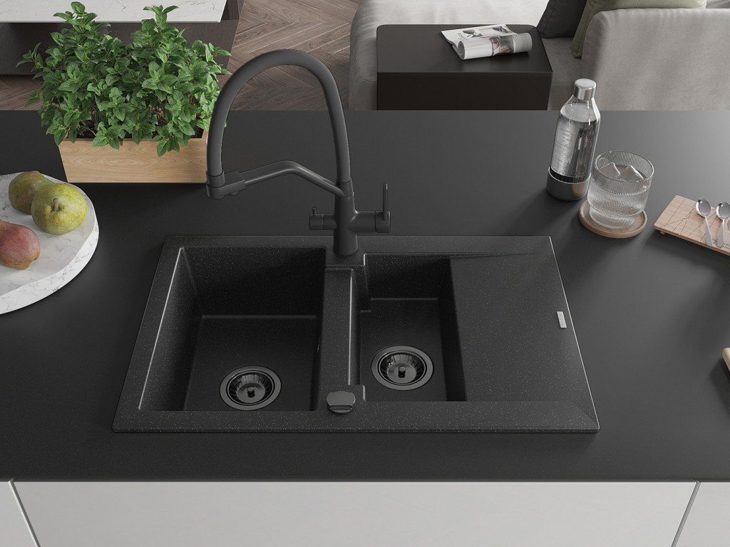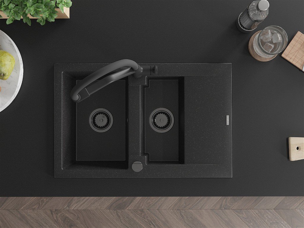 MEXEN/S - Gaspar granitový dřez 1.5 s odkapávačem včetně baterie Duo, černá/stříbrná 6507-73-671701-70-B
