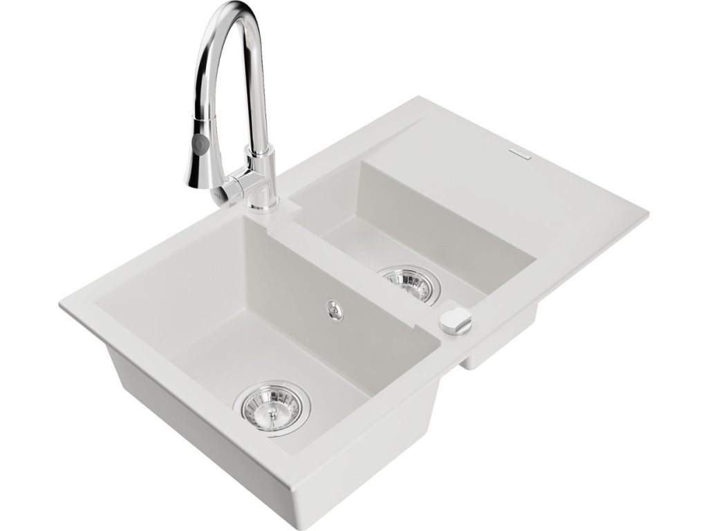 MEXEN/S - Gaspar granitový dřez 1.5 s odkapávačem včetně baterie Elia, bílá 6507-20-670101-00