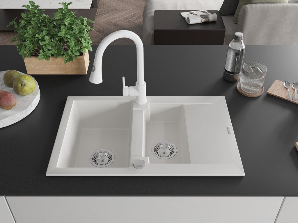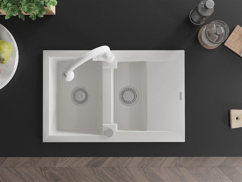MEXEN/S - Gaspar granitový dřez 1.5 s odkapávačem včetně baterie Elia, bílá 6507-20-670101-20