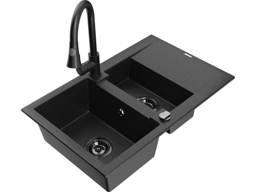 MEXEN/S - Gaspar granitový dřez 1.5 s odkapávačem včetně baterie Elia, černá/stříbrná 6507-73-670101-70-B