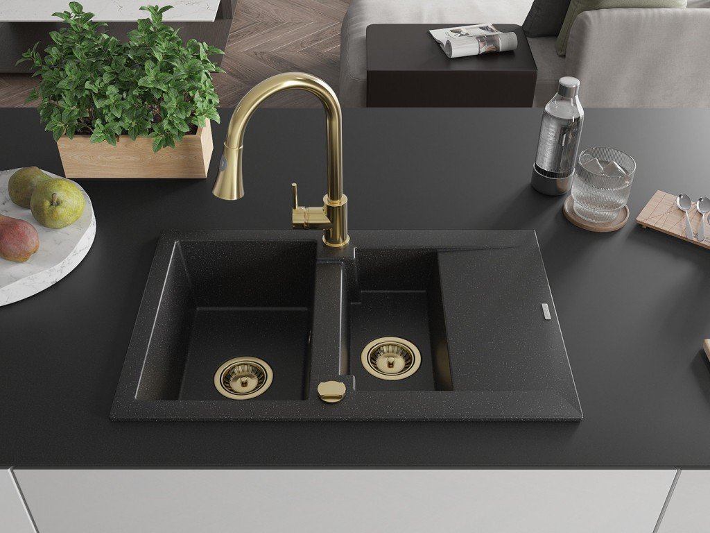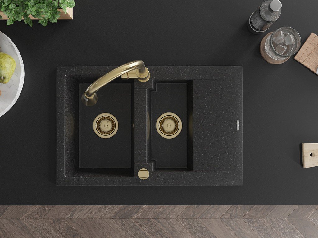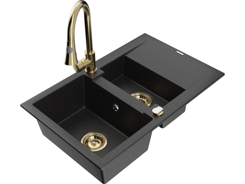 MEXEN/S - Gaspar granitový dřez 1.5 s odkapávačem včetně baterie Elia, černá/stříbrná metalik 6507-73-670101-50