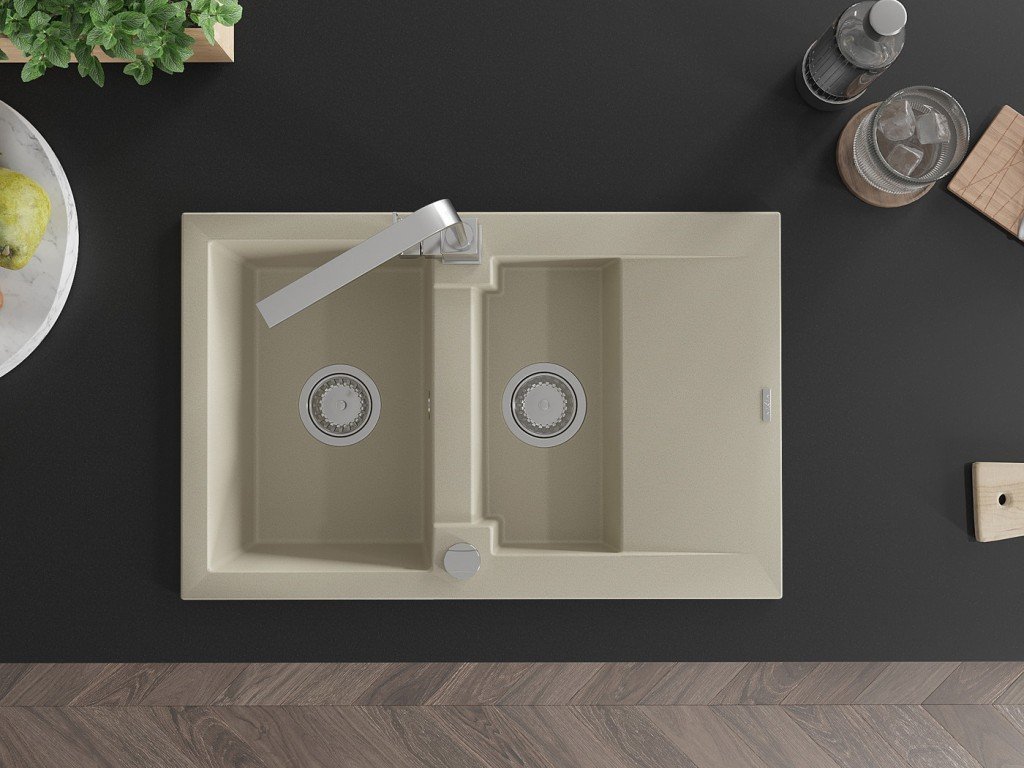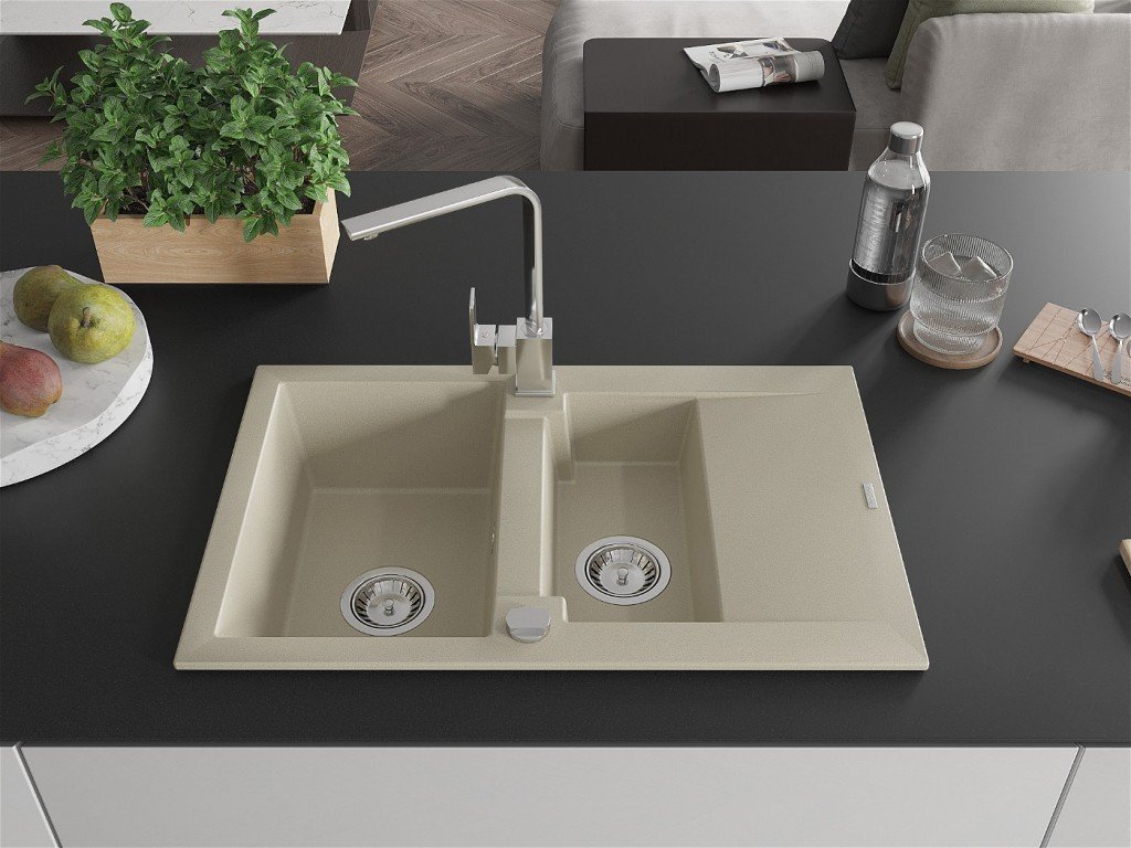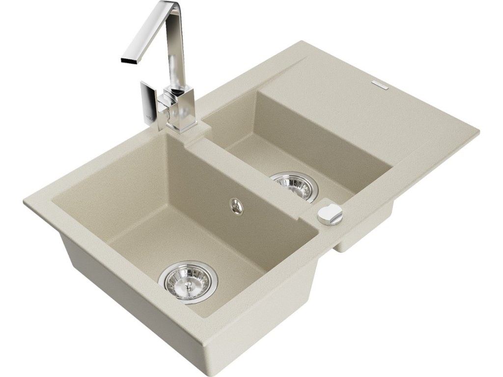 MEXEN/S - Gaspar granitový dřez 1.5 s odkapávačem včetně baterie Rita, béžový 6507-69-670300-00