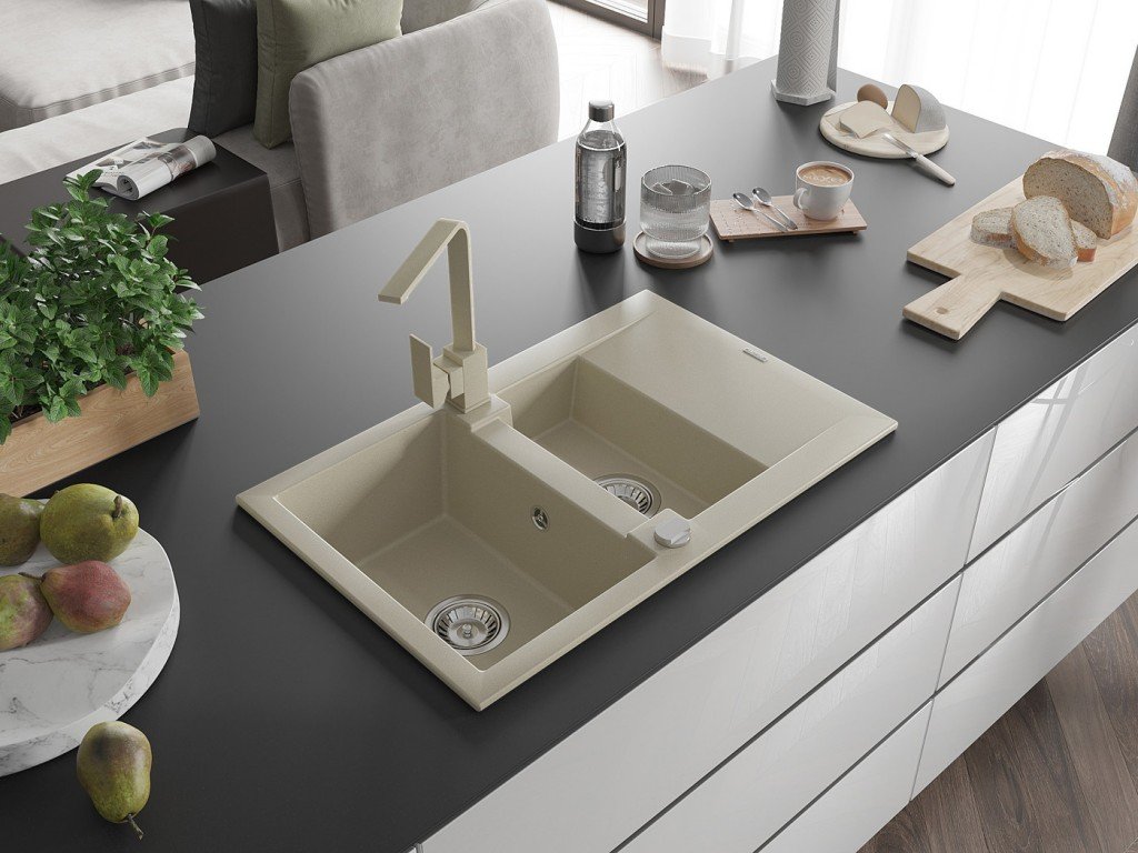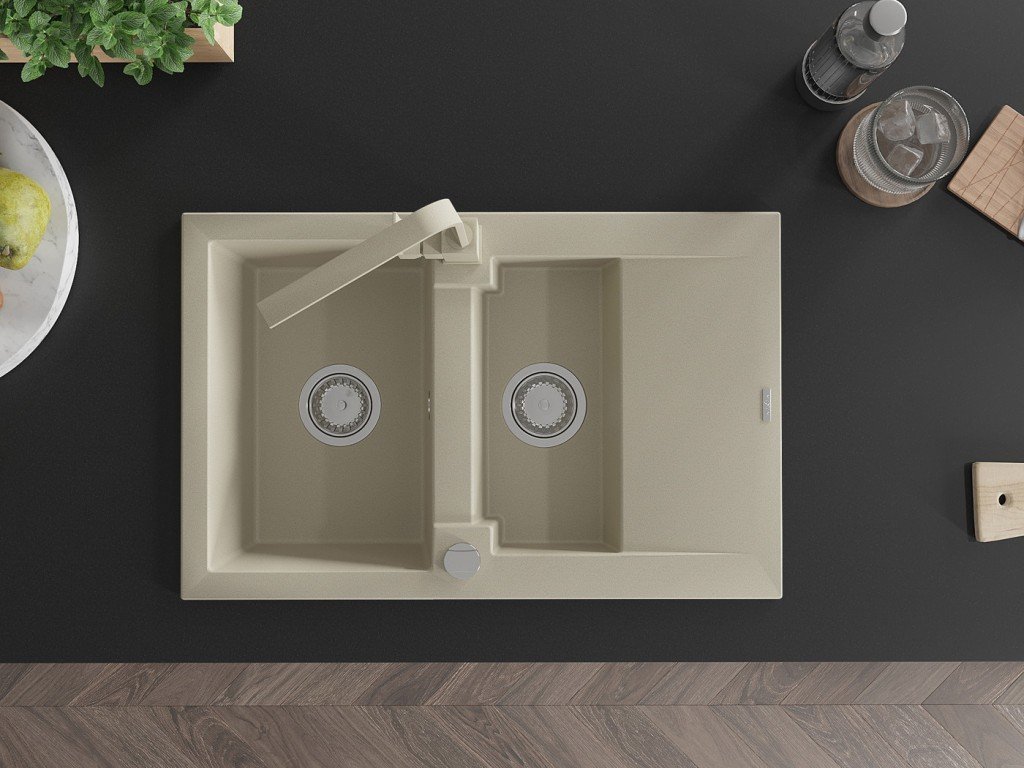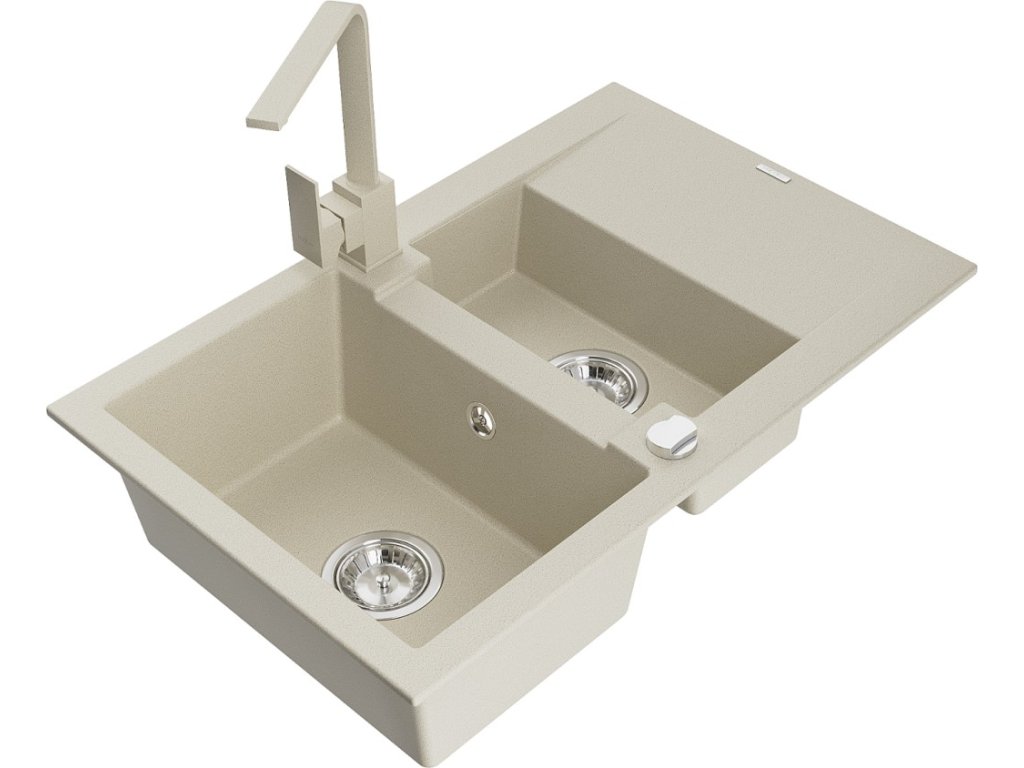 MEXEN/S - Gaspar granitový dřez 1.5 s odkapávačem včetně baterie Rita, béžový 6507-69-670300-69