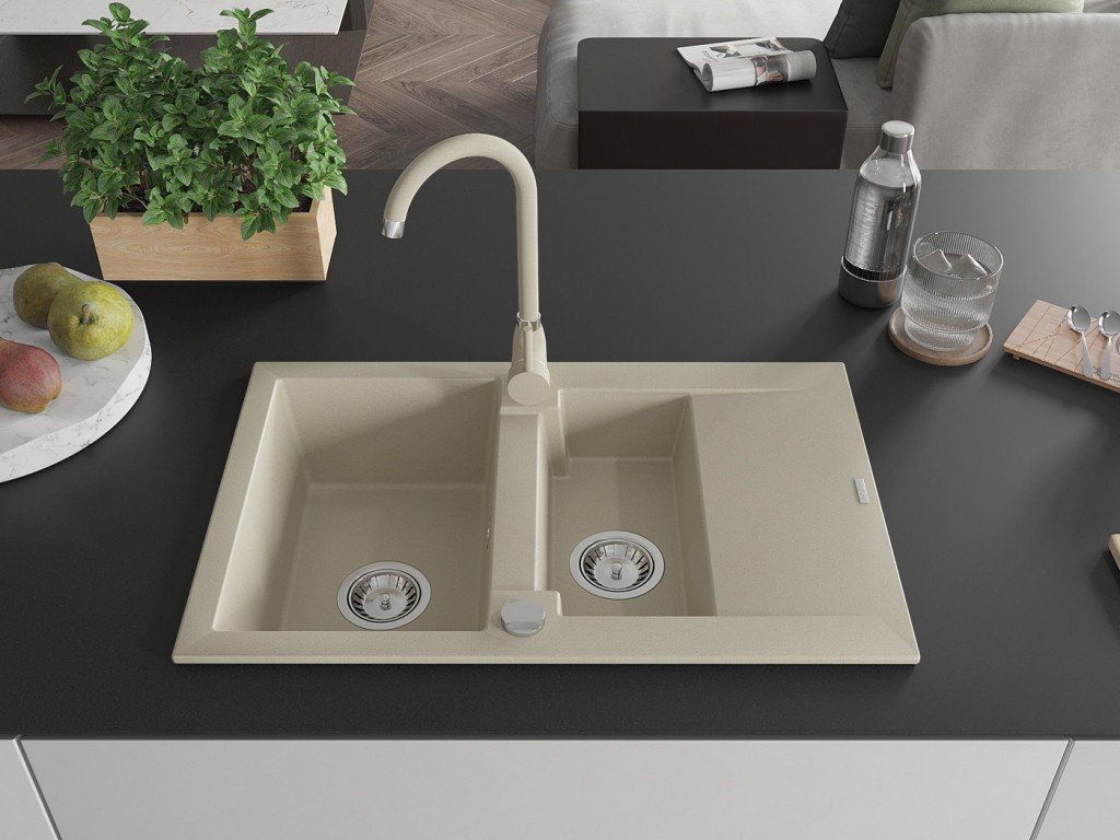 MEXEN/S - Gaspar granitový dřez 1.5 s odkapávačem včetně baterie Telma, béžováy 6507-69-670200-69