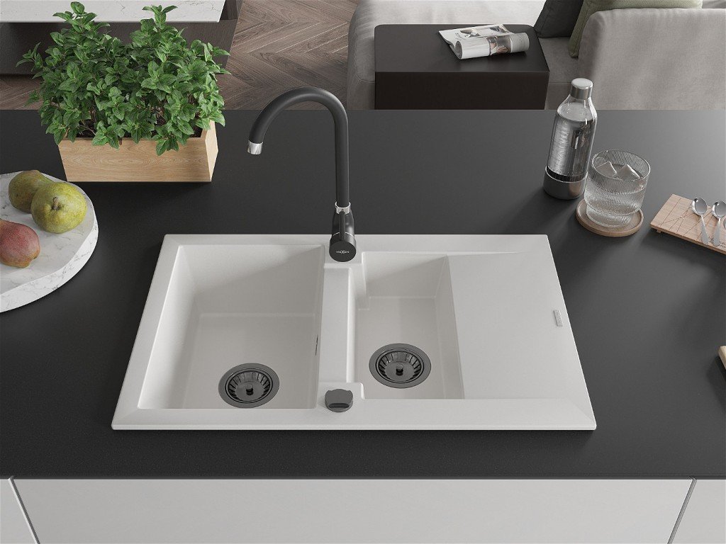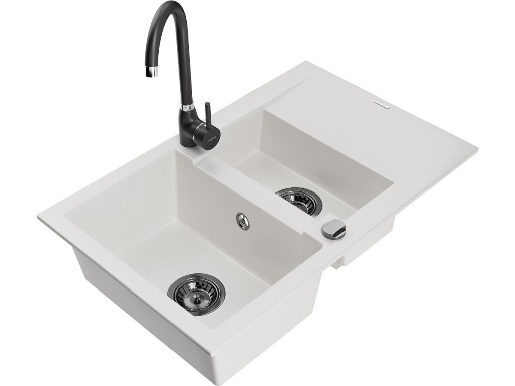 MEXEN/S - Gaspar granitový dřez 1.5 s odkapávačem včetně baterie Telma, bílá 6507-20-670200-70