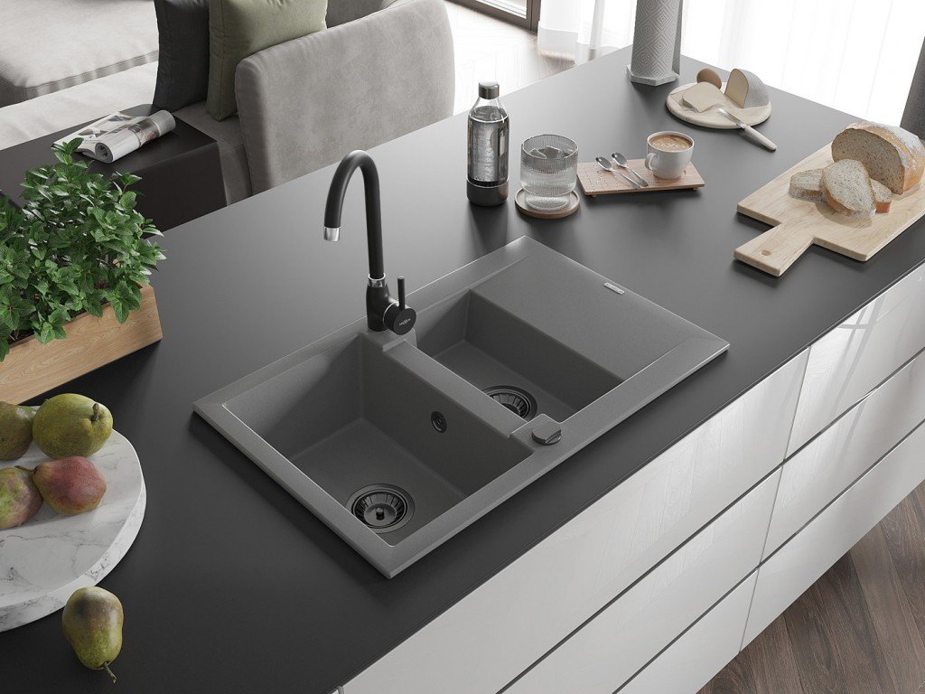 Kuchyňský granitový dřez odolný vůdči poškrábání, teplotním šokům a nárazům. Směs přírodní pryskyřice a hustého granitu.