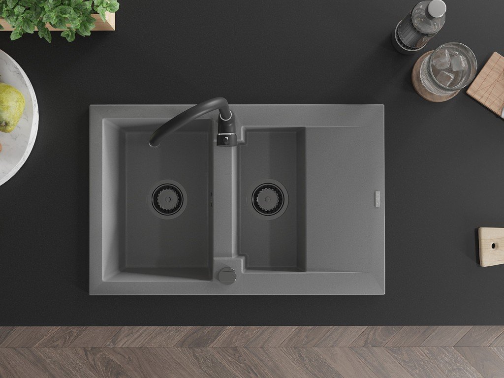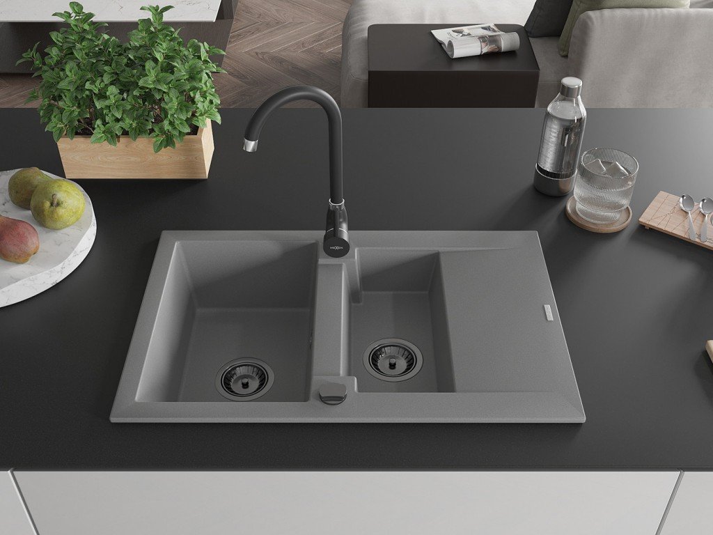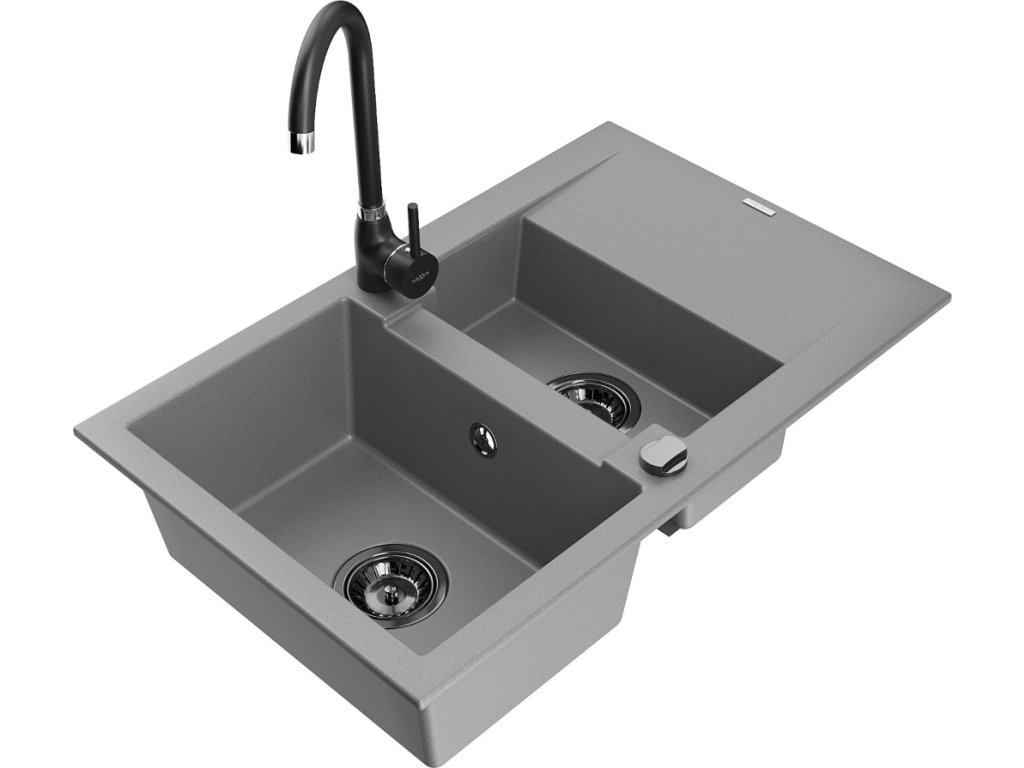 MEXEN/S - Gaspar granitový dřez 1.5 s odkapávačem včetně baterie Telma, šedá 6507-71-670200-70-B