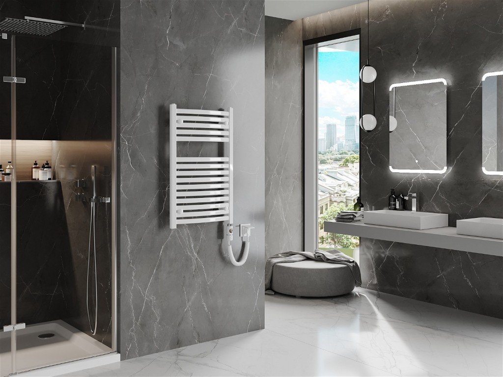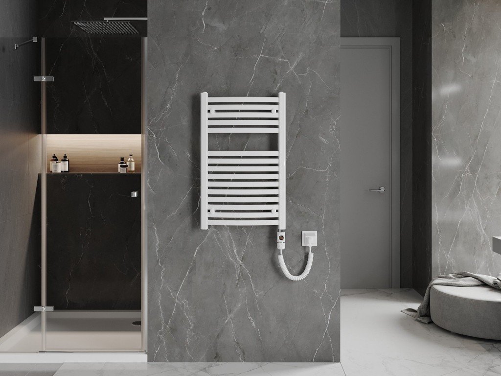 Elektrický topný žebřík DIRECT-E o rozměru 600x960 mm a výkonu 400 W představuje praktické elektrické topení pro každou koupelnu. Bílý rovný design působí moderně a nadčasově....