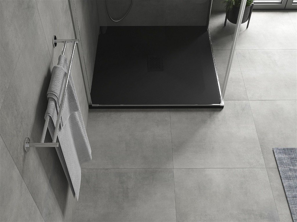 Sprchová vanička VEXO, vyrobená z SMC materiálu, zaujme matnou černou povrchovou úpravou s jemnou strukturou, imitující přírodní kámen. V ceně vaničky je zahrnuta i krytka...