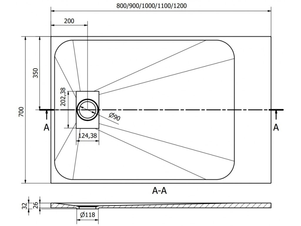 MEXEN/S - Hugo sprchová vanička SMC 120x70, černá, krytka černá 42707012-B