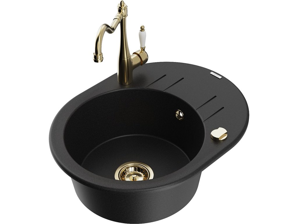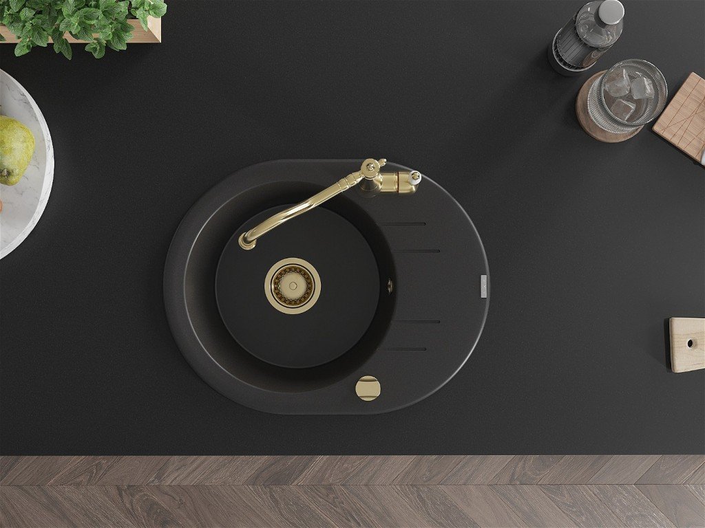 MEXEN/S - Kevin granitový dřez 1-miska s odkapávačem včetně baterie Carla, černá 6517-77-670700-50