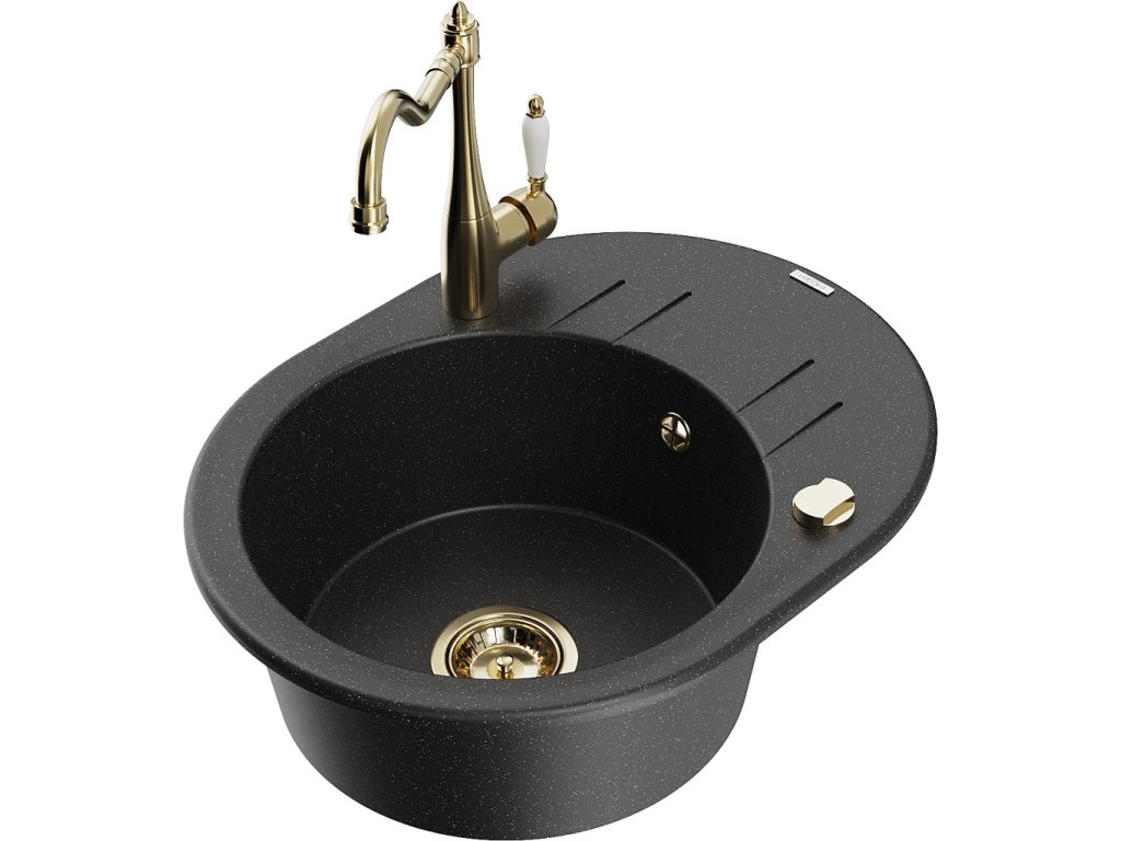 MEXEN/S - Kevin granitový dřez 1-miska s odkapávačem včetně baterie Carla, černá/stříbrná metalik 6517-73-670700-50